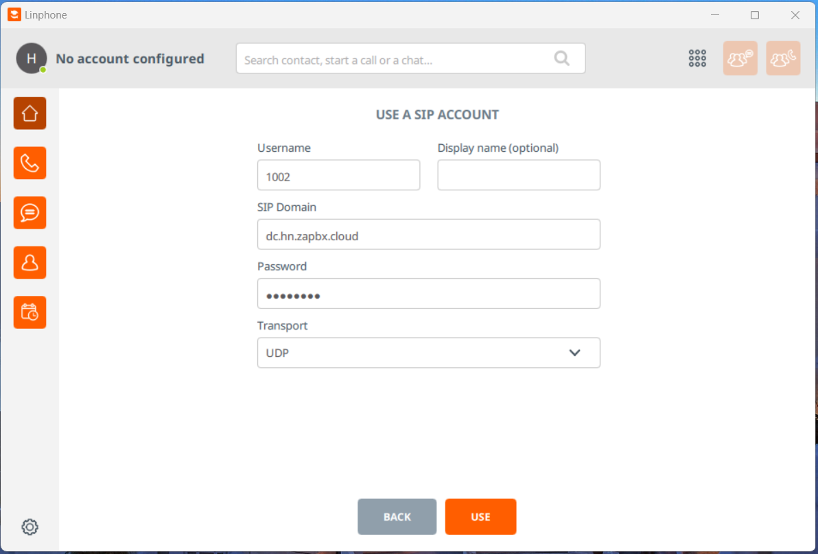 Nhấn nút "USE A SIP ACCOUNT" để bắt đầu cài đặt tài khoản máy nhánh